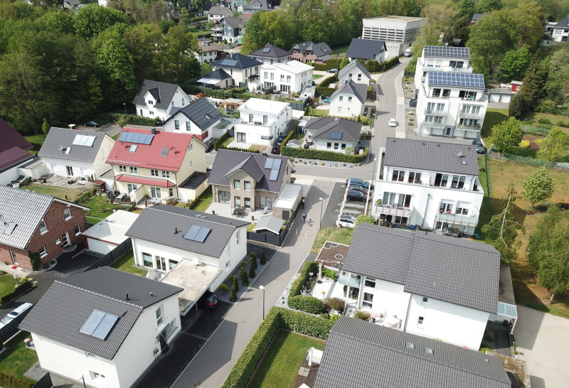 Die Wärmeversorgung und Warmwasseraufbereitung erfolgt über eine moderne Wärmepumpentechnik in Kombination mit leistungsfähigen Photovoltaikanlagen.